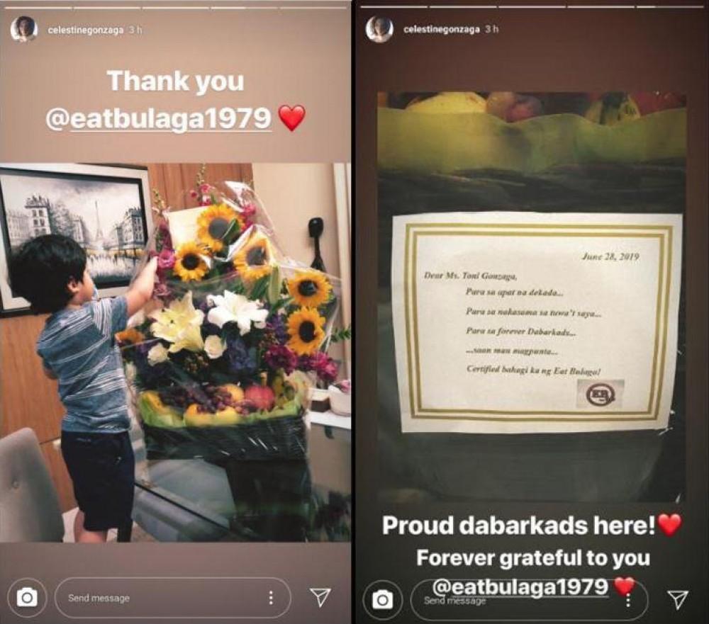 Sa Instagram Story ni Toni last week, makikita na taos-puso siya nagpasalamat sa lahat ng bumubuo ng Eat Bulaga matapos makatanggap ng regalo mula sa dati niyang mga katrabaho.