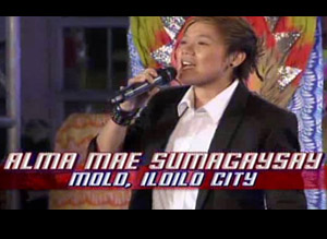 Wagi si Alma Mae Sumagaysay mula Molo, Iloilo City. Naging inspiration ni Alma ang kanyang ama na namatay sa liver cancer noong 2007. Humanga ang mga judges sa mahusay niyang pagkanta ng Musika ng Buhay na mala-Aegis ang hagod.