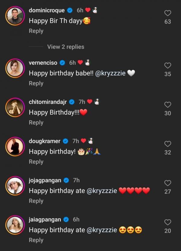 Aside from this, the soon-to-be mom of three received loads of birthday messages from celebrities and personalities such as Dominic Roque, Verniece Enciso, Chito Miranda, Doug Kramer, Joj Agpangan, and Jai Agpangan.