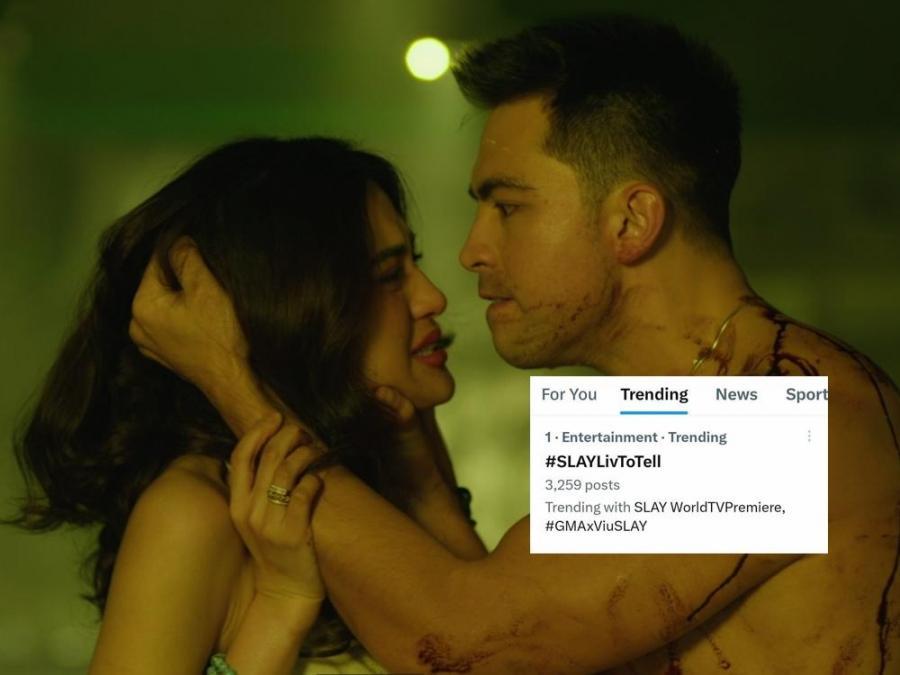 Sa TV premiere nitong Lunes (March 24), nag-trend sa X (dating Twitter) ang hashtag ng SLAY na "SLAYLivToTell," na nanguna sa Philippine trends, maging ang "#GMAxViuSLAY" at "SLAY WorldTVPremiere."