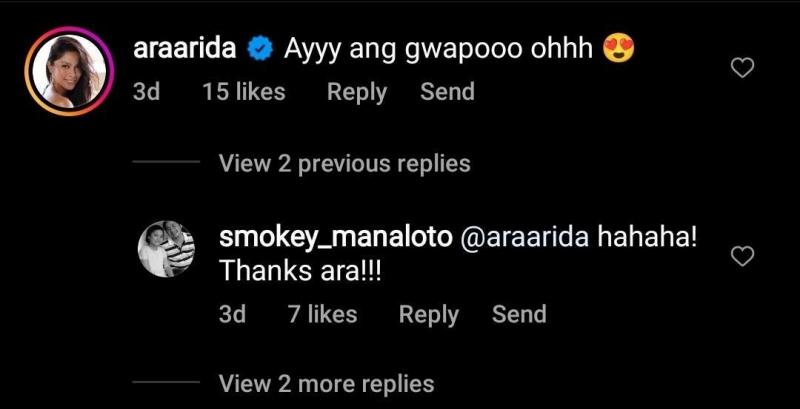 “Ayy ang gwapooo ohh [heart-eyed emoji],” Kapuso actress and Miss Universe Philippines 2013 Ariella Arida wrote.