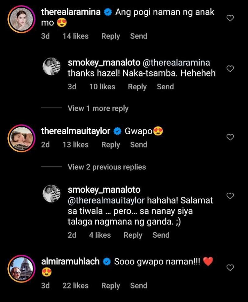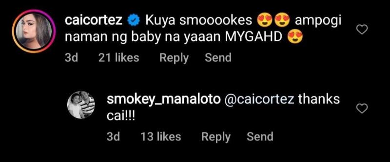 Actress and celebrity mom Cai Cortez also commented, “Kuya smoookes [heart-eyed emoji] ampogi naman ng baby na yaan MYGAHD [heart-eyed emoji].”
