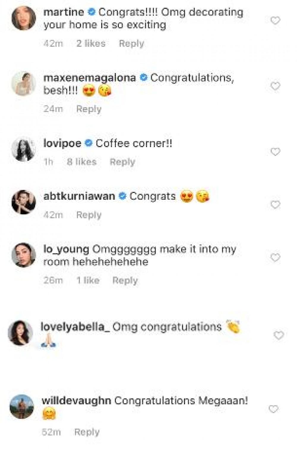 Several celebrities commented on Megan's Instagram post and congratulated the Kapuso actress on her new abode.