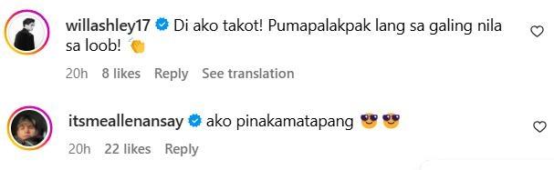 He wrote, "Di ako takot! Pumapalakpak lang sa galing nila sa loob!"
