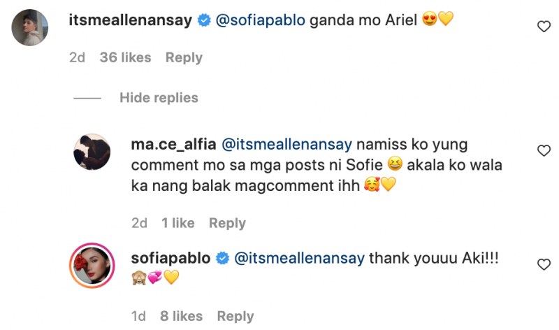 "@sofiapablo ganda mo Ariel," Allen commented.