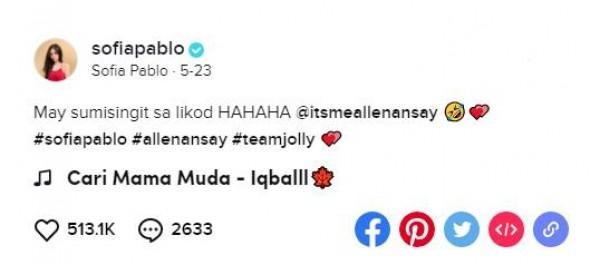 Sofia Pablo's TikTok video with Allen Ansay now has 7 million views!