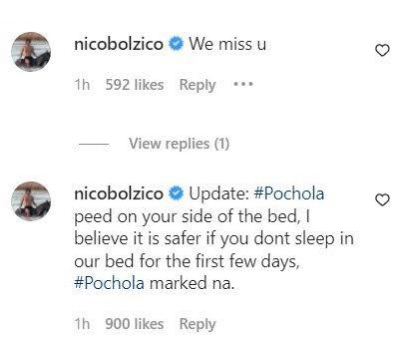 “#Pochola peed on your side of the bed, I believe it is safer if you don't sleep in our bed for the first few days, #Pochola marked na.”