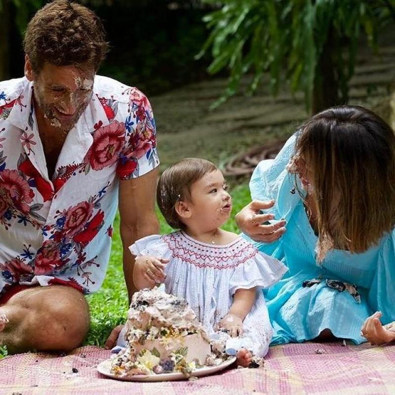 Solenn and Nico celebrated their daughter's birthday with a cake which they allowed her to destroy.