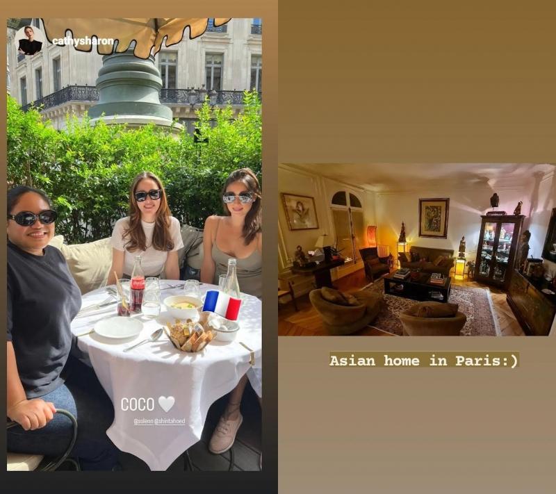 The actress also showed a photo of her dining out with two female friends and a photo of her Asian-inspired home in Paris.