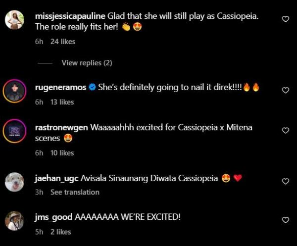 Isang netizen naman ang nagkomento na excited na siya para sa mga eksena sa pagitan nina Cassiopea at Mitena, na gagampanan naman ni Rhian Ramos.