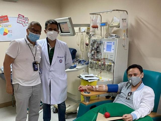 Senator and now COVID-19 survivor Sonny Angara donates his blood plasma for possible cure of critically-ill patients.