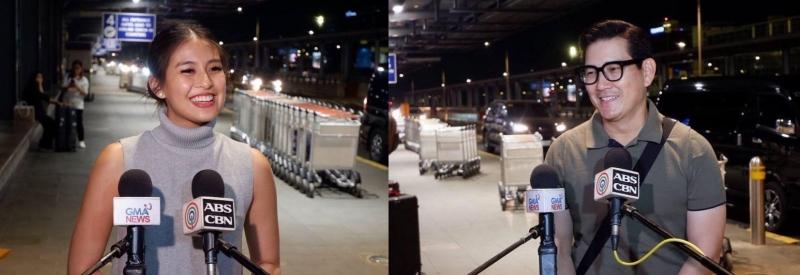 Bago bumiyahe, nakakuwentuhan muna nina Gabbi at Richard ang news team ng GMA at pati na rin ng ABS-CBN.