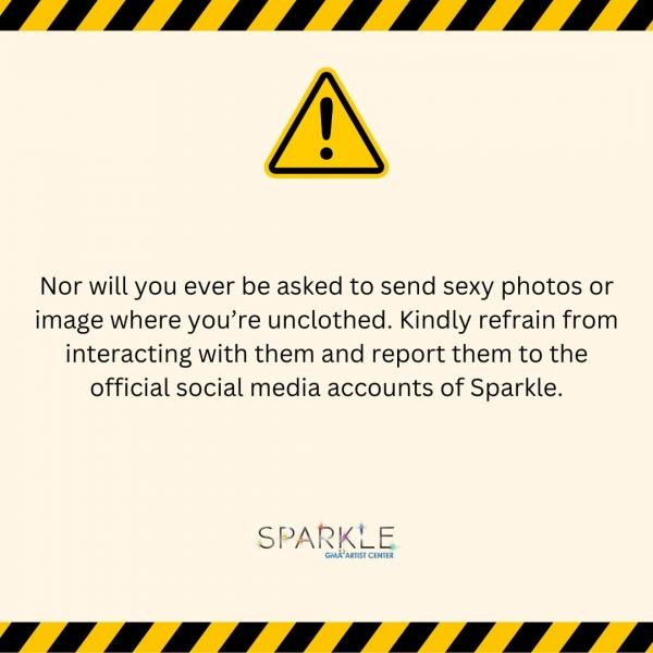 Nor will you ever be asked to send sexy photos or image where you're unclothed. Kindly refrain from interacting with them and report them to the official social media accounts of Sparkle.