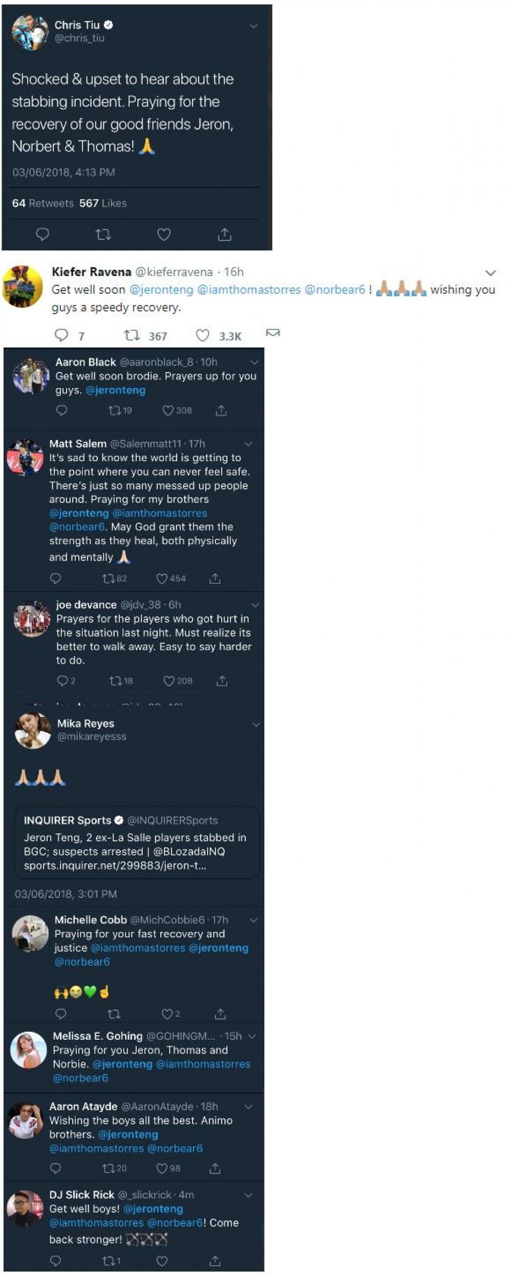 JUST IN: PBA Players Jeron Teng, Thomas Torres, and Norbert Torres are all recovering after getting stabbed outside a club in BGC early this morning.