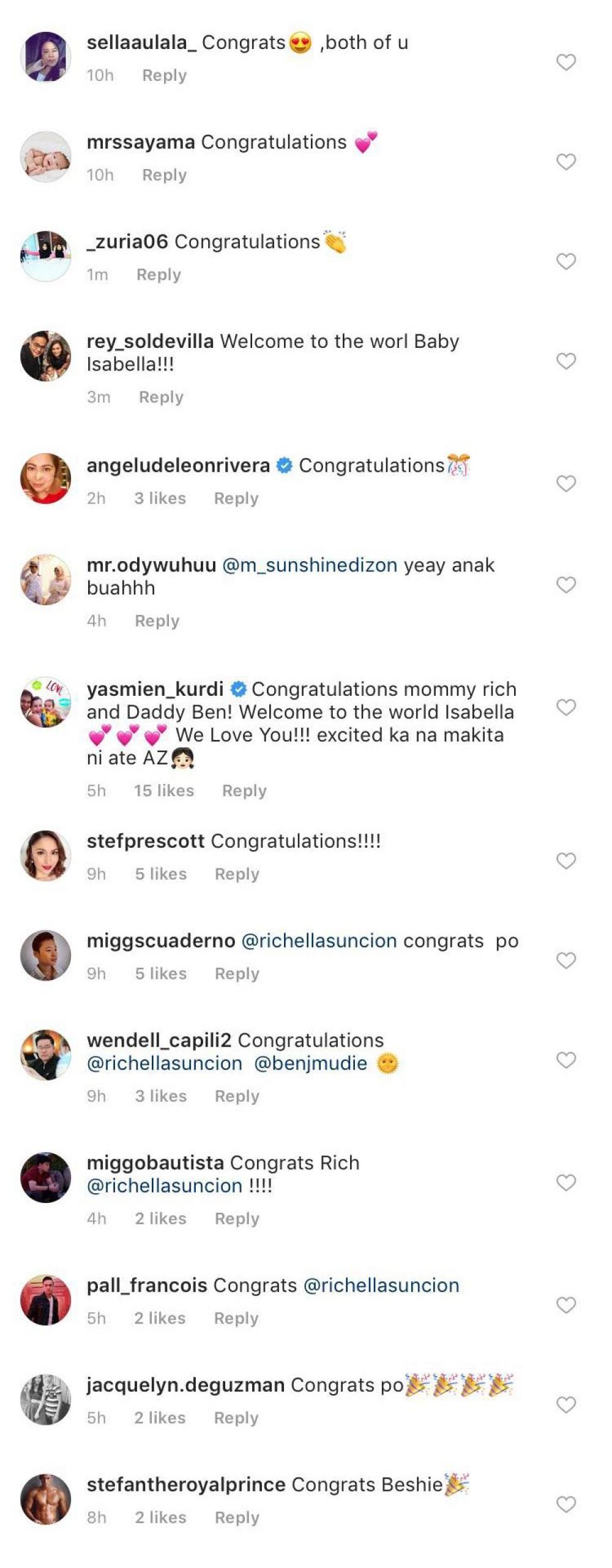 Her fellow StarStruck alumni Stef Prescott, Prince Stefan, and Yasmien Kurdi sent their messages to Rich and her husband, Benjamin Mudie.