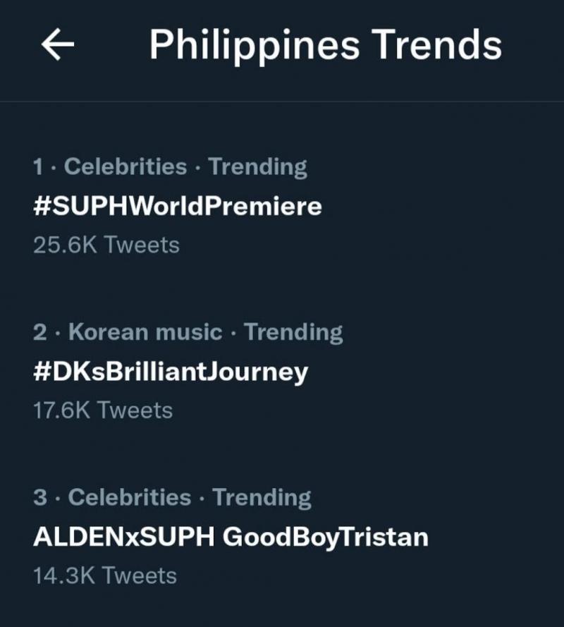 #SUPHWorldPremiere took the No.1 spot in the trending topics list on PH Twitter.