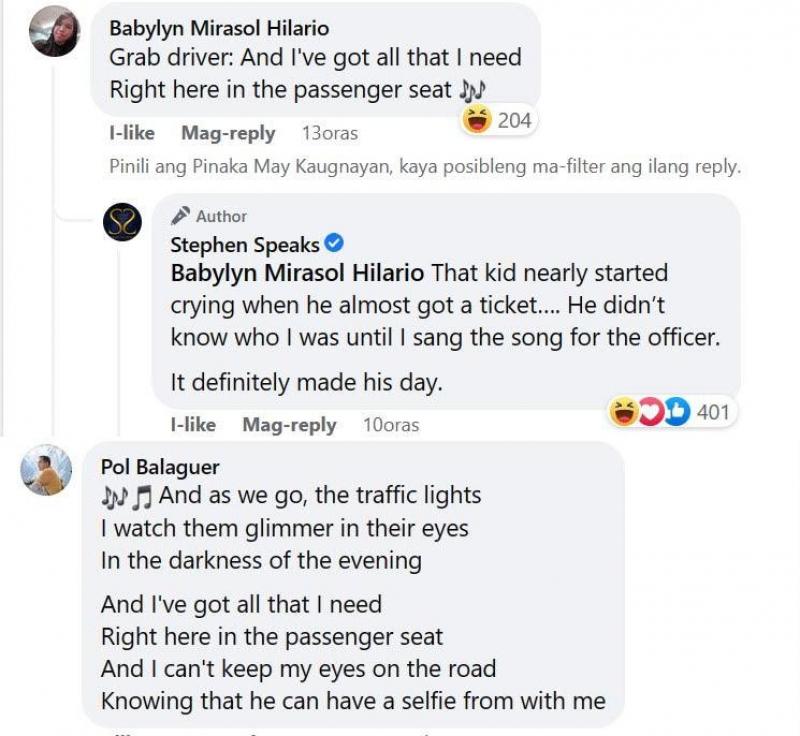 Meanwhile, other commenters chose to have fun with the post instead, quoting snippets from “Passenger Seat” that fit into the situation.