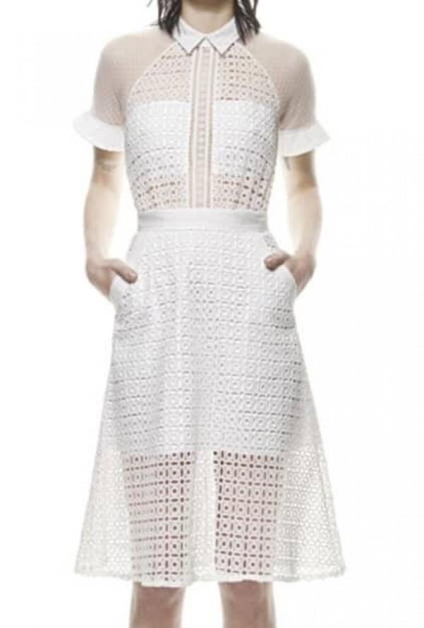 White Short Sleeve Hollow Sheer Dress - US$24.09 or around PhP 1,230 (Emmacloth)