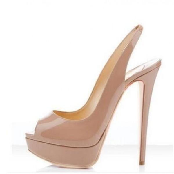 DHgate Elegant Nude Patent Leather Peep Toe Pumps Slingback - PhP 3,700