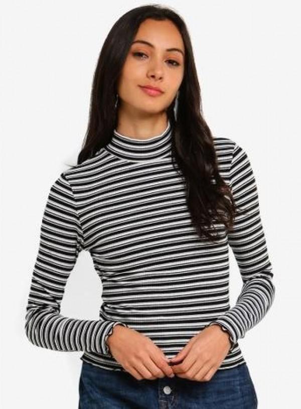 Women's Turtleneck Black and White Stripes Long Sleeves - around PhP 300 (Shopee)