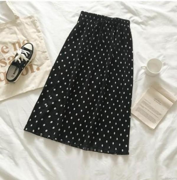 Vintage Pleated Skirt Polka dot skirt A-line Printed Mid Skirts - around PhP 450 (Shopee)