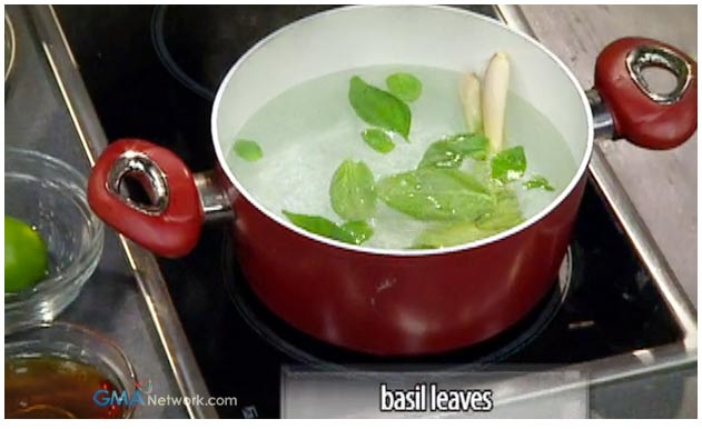 1. Boil water in a saucepan. Once boiling, place the tanglad and basil. Turn off heat and let it steep for 30 minutes and allow it to cool.