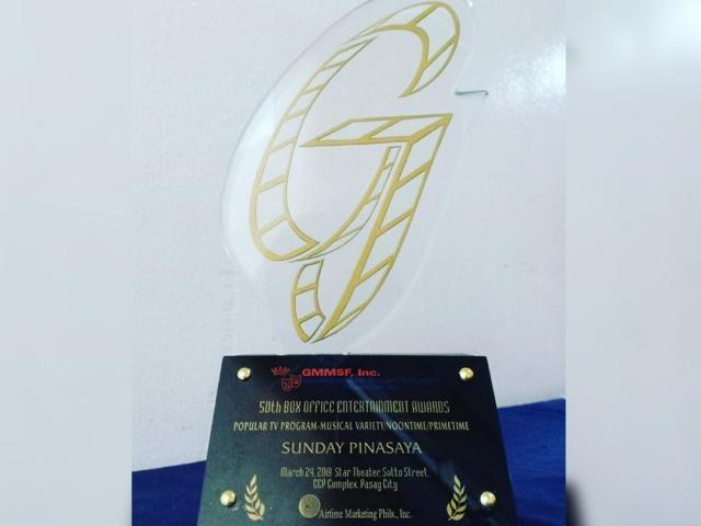 Pinarangalan ang Sunday PinaSaya bilang Popular TV Program sa ginanap na 50th Box Office Entertainment Awards ng Guillermo Mendoza Memorial Scholarship Foundation sa CCP Complex, Pasay City nitong March 24.
