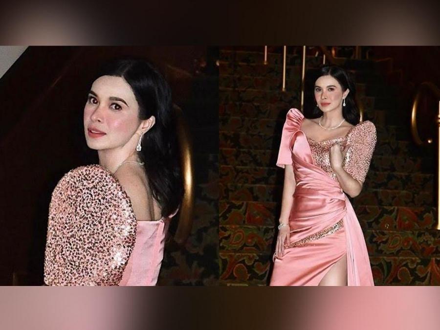 The Unbreak My Heart star shared several stunning photos of her donned in a rose gold bedazzled custom terno gown from Ebiro De Mariée.