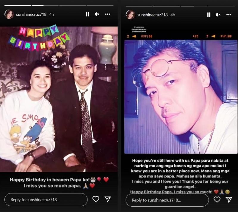 In a series of post via Instagram Story, Sunshine posted some throwback photos of Papa Danny. She wrote in one of her captions, “Happy Birthday in heaven, Papa ko. I miss you so much papa.”