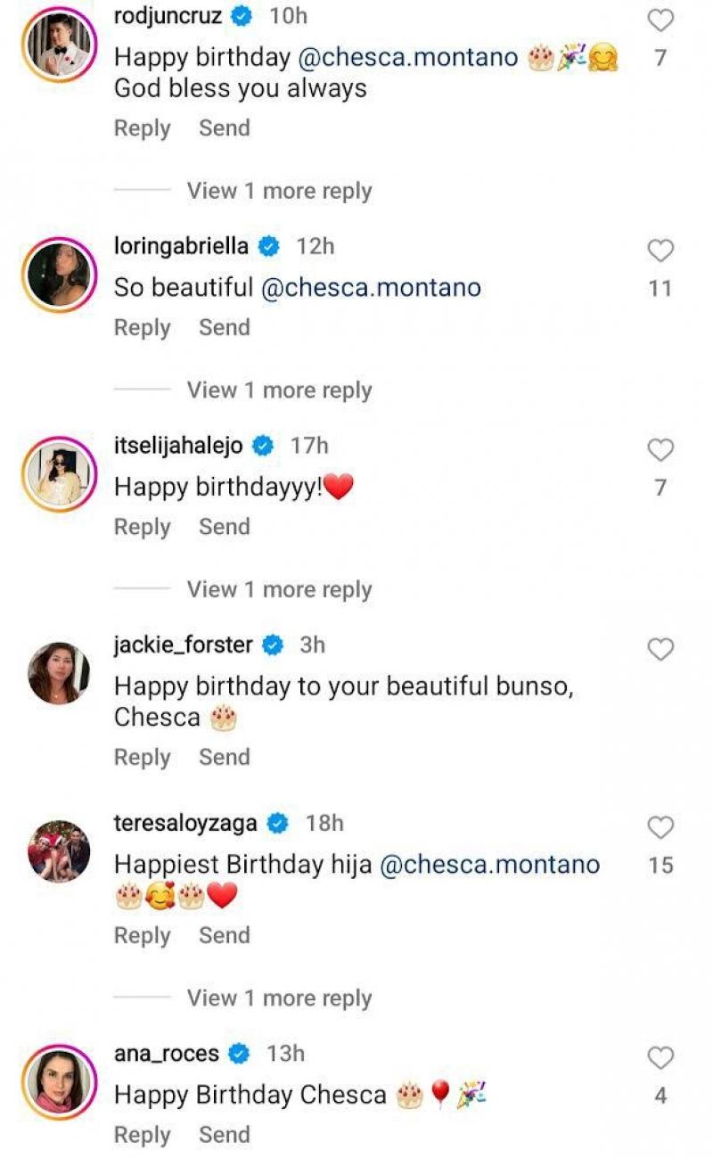 “Happiest Birthday hija @chesca.montano,” @teresaloyzaga reacted.