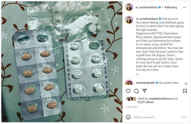 In a separate post, Sunshine revealed that she was also diagnosed with several mental health problems including post-traumatic stress disorder (PTSD) and depression. She also confirmed that she is suffering from panic attacks, too.