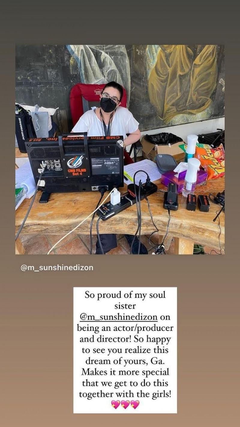 She posted on her Instagram Story, “So proud of my soul sister @m_sunshinedizon on being an actor/producer and director! So happy to see you realize this dream of yours, Ga. Makes it more special that we get to do this, together with the girls!”
