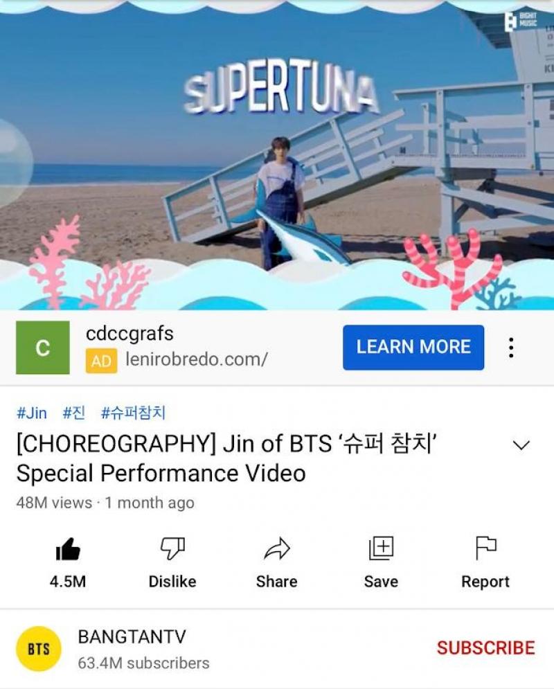 Sa kasalukuyan, mayroon nang 4.5 million likes at 48 million views and dance choreography video ni Jin sa Youtube.