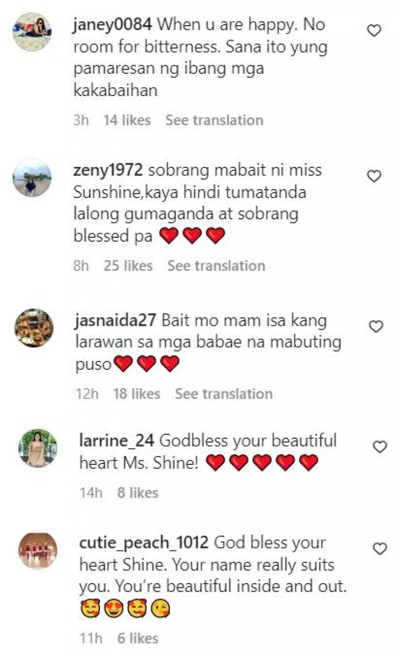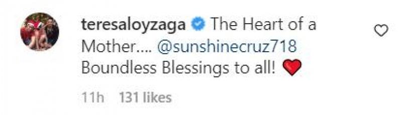 Teresa Loyzaga, whom Cesar also has a son, actor Diego Loyzaga, applauded Sunshine's attitude towards the half-siblings of her daughters.