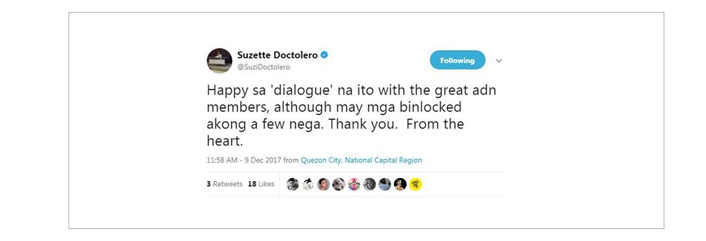 Sa huli, nagpasalamat siya sa ilang miyembro ng AlDub Nation para sa "dialogue" nila on Twitter.