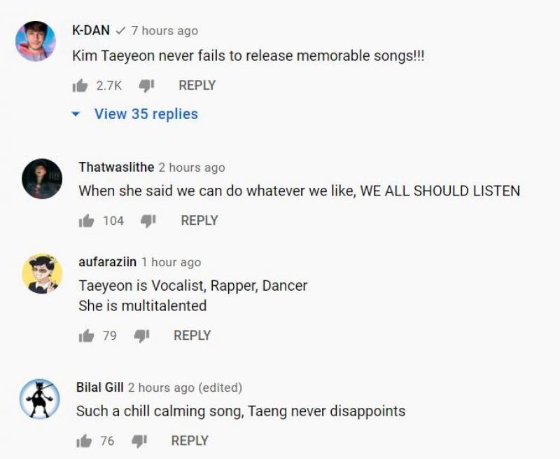 Taeyeon received a deluge of positive comments with her brand-new single and one even described her as a 'multi-talented' singer.