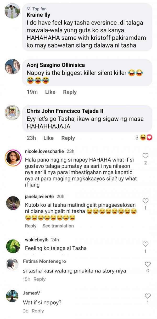 Narito ang ilang komento ng netizens kung bakit sa tingin nila si Tasha ang pumatay kay Gustavo Royales: