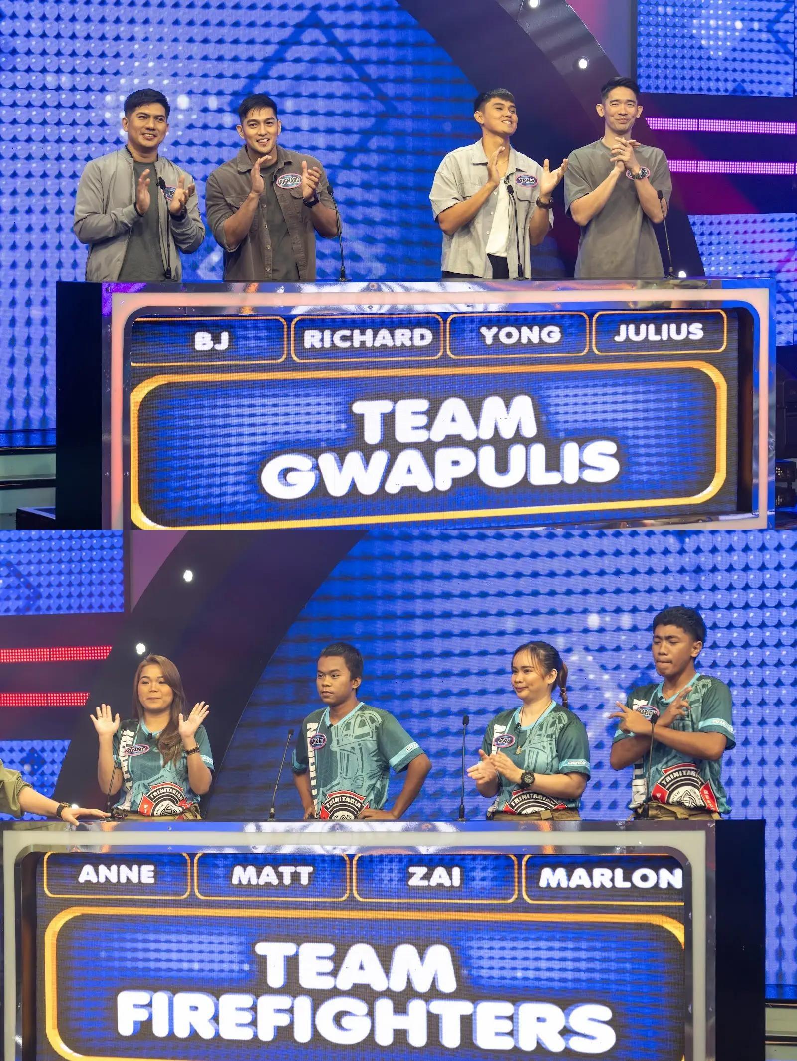 Mula naman sa Team Firefighters, maglalaro ang mga volunteers mula sa Trinitarian Fire & Rescue Brotherhood sa Quezon City. Sasabak sa survey hulaan ang 24-year-old firefighter and medic na si Precious Anne Mistades. Kasama niya sa Team Firefighters ang youngest sa brotherhood na si Matt Mariano Jarmin, ang 26-year-old medic na si Zairine Red Porte, at ang dedicated fireman na si Marlon Diaz Lubay.