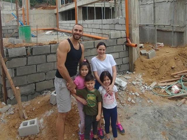 “First time to show the back part of our house. Behind us, is an above the ground infinity pool facing the city. To the right will be the kids playground and garden. And in front of us will be the kids’ treehouse! Can't wait till everything unfolds! ”