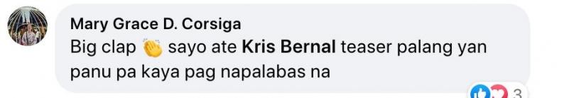 "Big clap sa'yo ate Kris Bernal, teaser palang 'yan paano pa kaya 'pag napalabas na," komento naman ng isang netizen.