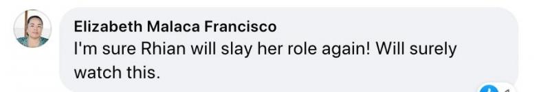 "I'm sure Rhian will slay her role again! Will surely watch this," ani ng isang fan.