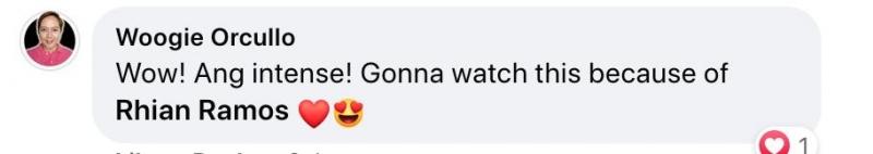 Aniya, "Wow! Ang intense! Gonna watch this because of Rhian Ramos."