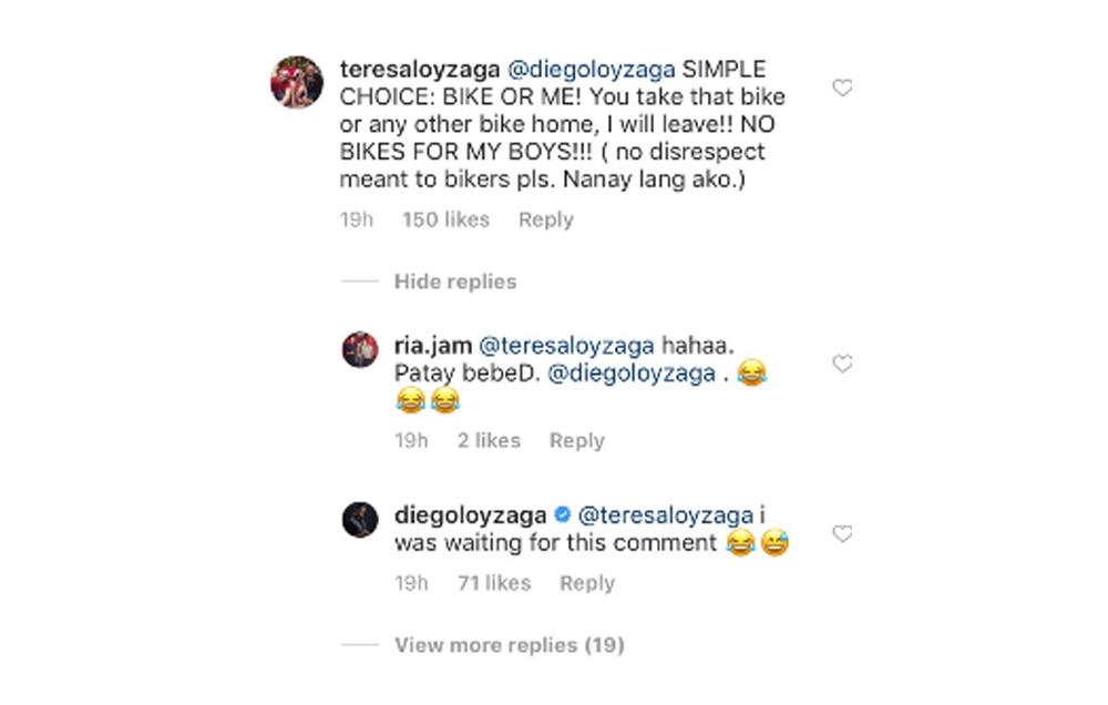 Sa palitan nila ng mensahe sa comments section ng Instagram, makikita na pinapili ni Teresa si Diego kung ang ano mas mahalaga: ang motorsiklo nito o siya.