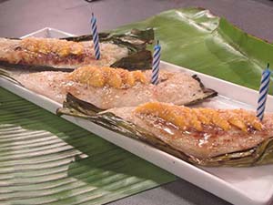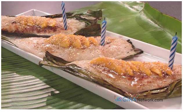 Put rice mixture, make a square wrap with banana leaves and pan fry until slightly browned. In a separate sauce pan, mix coconut cream, brown sugar and butter until dissolved and slightly thickened.