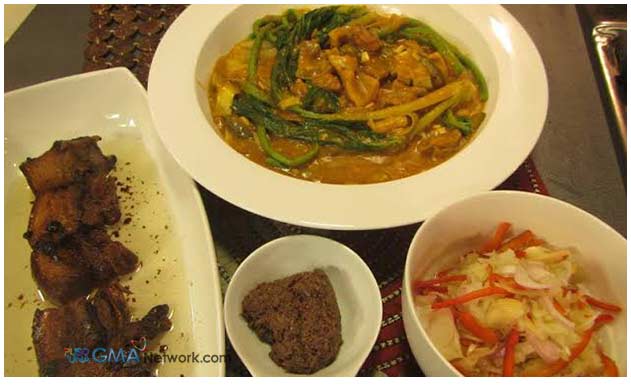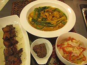 The nutty kare-kare sauce and perky adobo are partnered perfectly with papaya atchara.