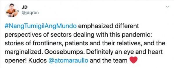 The Atom Araullo Specials's documentary titled 'COVID-19: Nang Tumigil Ang Mundo' became the top trending topic on Twitter Philippines on May 31.
