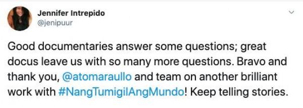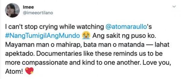 Aside from becoming the top trending topic, Atom's docu also garnered praises from viewers and netizens.