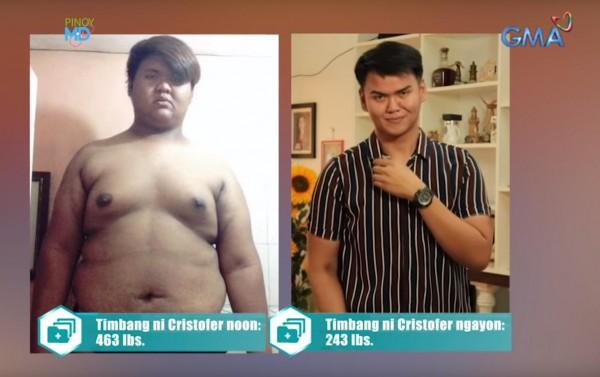 Cristofer's obesity was the result of over-consuming food high in carbohydrates, like his favorite instant pancit canton accompanied with white rice that can sometimes amount to one and a half kilos a day. His unhealthy lifestyle made every day difficult for him, especially his love life.