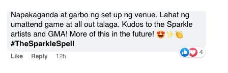 “Napakaganda at garbo ng venue. Lahat ng umattend game at all out talaga. Kudos to the Sparkle artists and GMA! More of this in the future!”