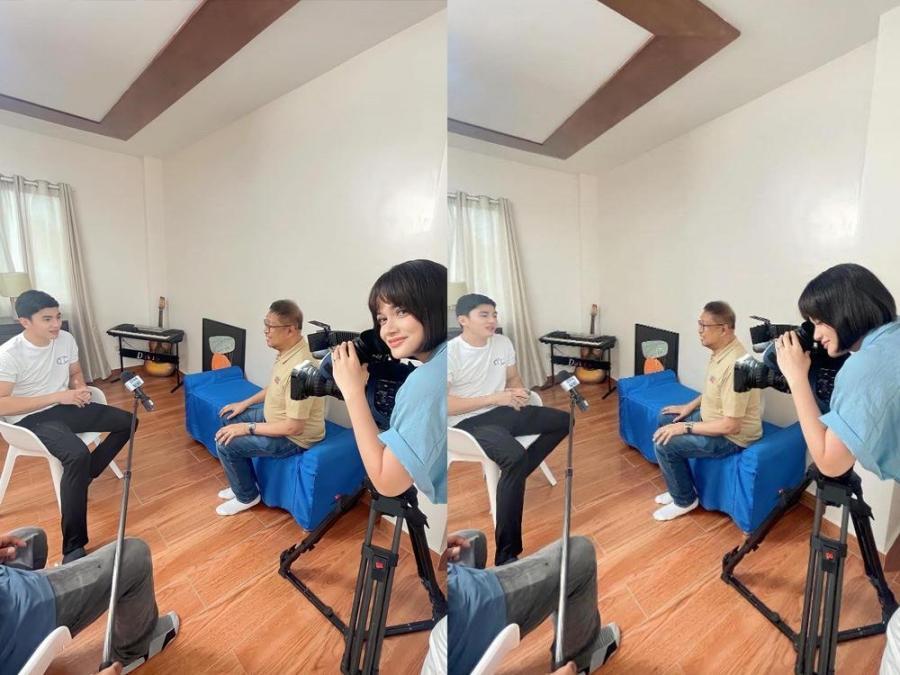 Habang on going ang interview ni Lhar Santiago sa aktor na si Jak Roberto, sinubukan ni Yasmien ang pagkuha ng videos gamit ang camera na nakatutok sa dalawa.